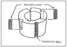 - Tighten the screws alternately until the bushing is loosened in the hub. If the bushing does not loosen immediately, tap on the hub to assist remove.