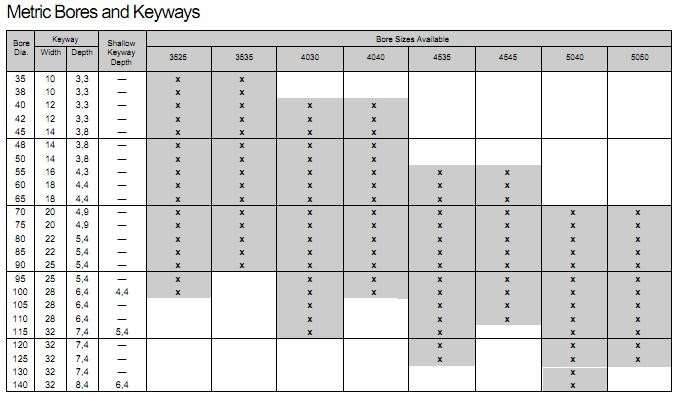bush size in figure 4a and figure 4b. Note that special bores and keyway sizes